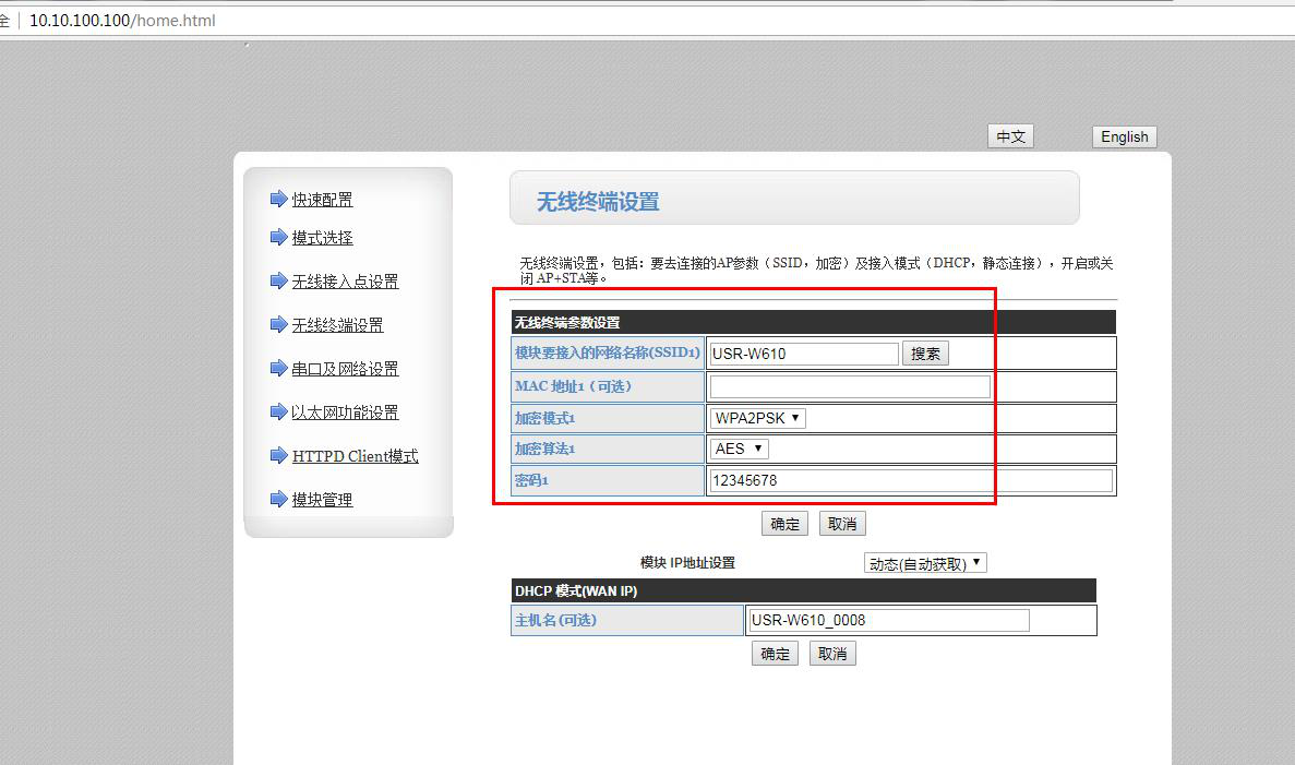 2、2號USR-W610 STA模式參數(shù)設(shè)置: