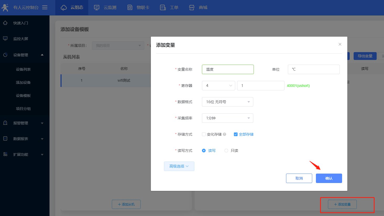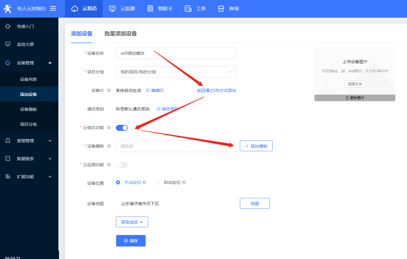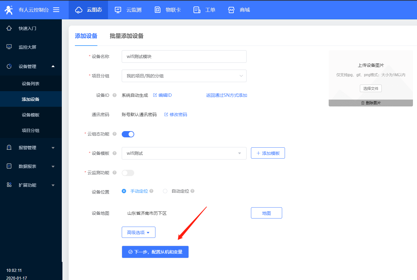 5、本次案例是C215連有人云進行數(shù)據(jù)顯示,可以進入云組態(tài),選擇添加設備;