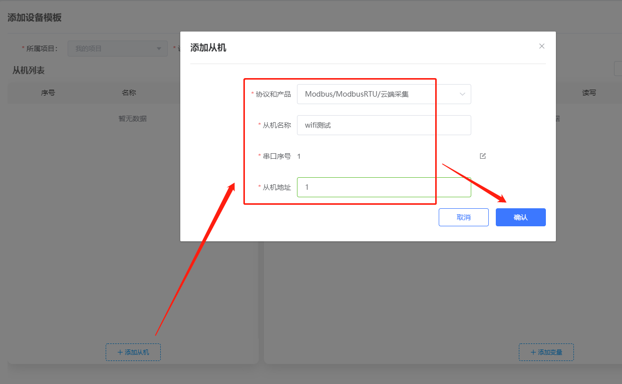 7、模板更改名稱,選擇modbus rtu協(xié)議,點擊保存