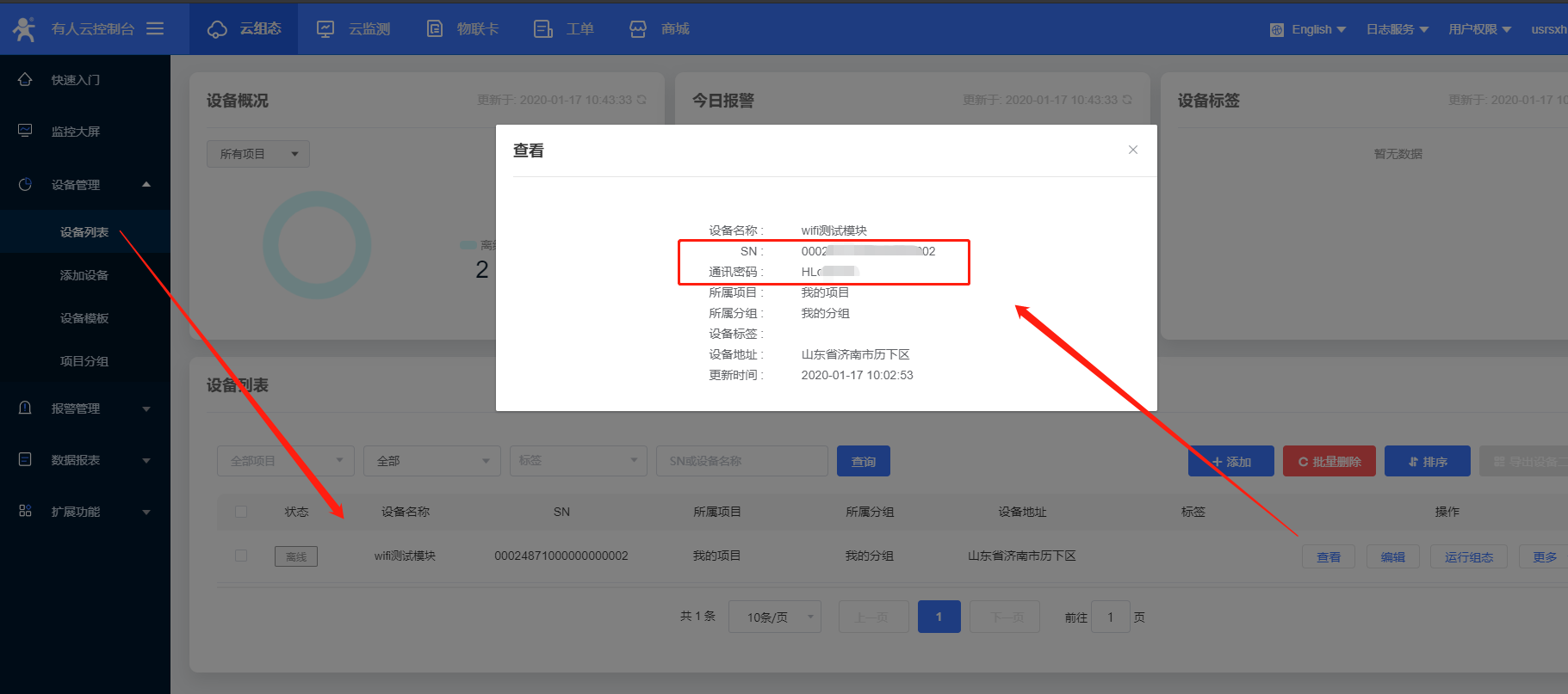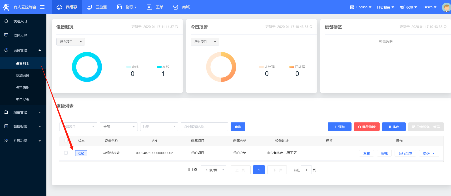 15、設置完所有的參數(shù)要重啟設備,稍等一會,在有人云界面,您會看到設備已經(jīng)上線