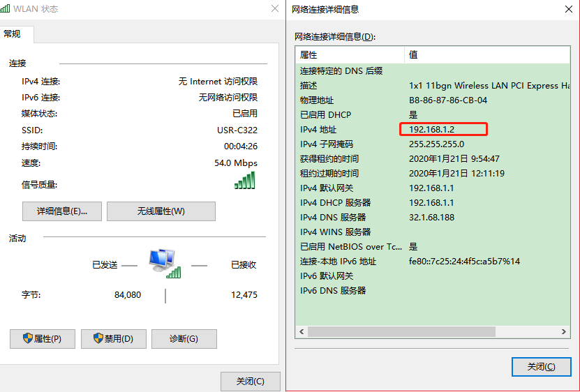(2) 連接成功后或者電腦獲取到IP:182.168.1.2, 把除了wifi的網卡禁用。