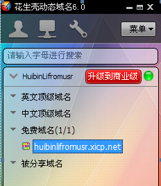 下載花生殼軟件,申請一個動態(tài)域名,如下動態(tài)域名名為:huibinlifromusr.xicp.net