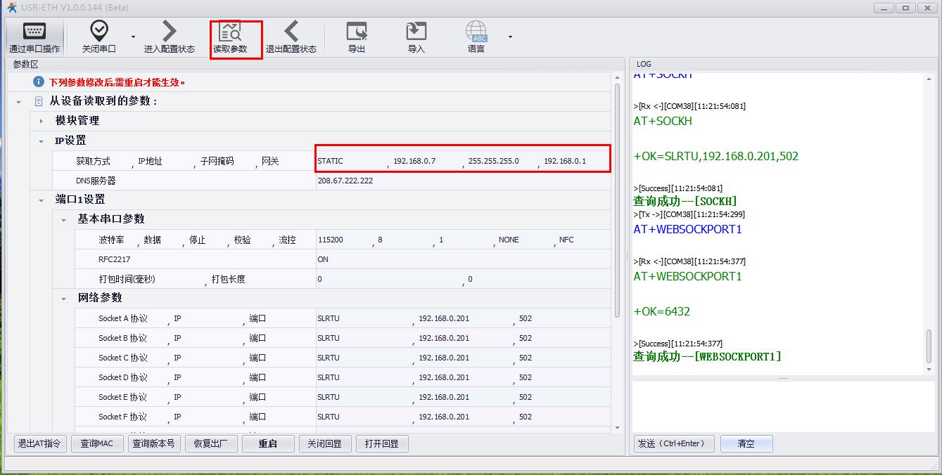 用串口設(shè)置軟件搜索USR-M511的IP。確認(rèn)是192.168.0.7