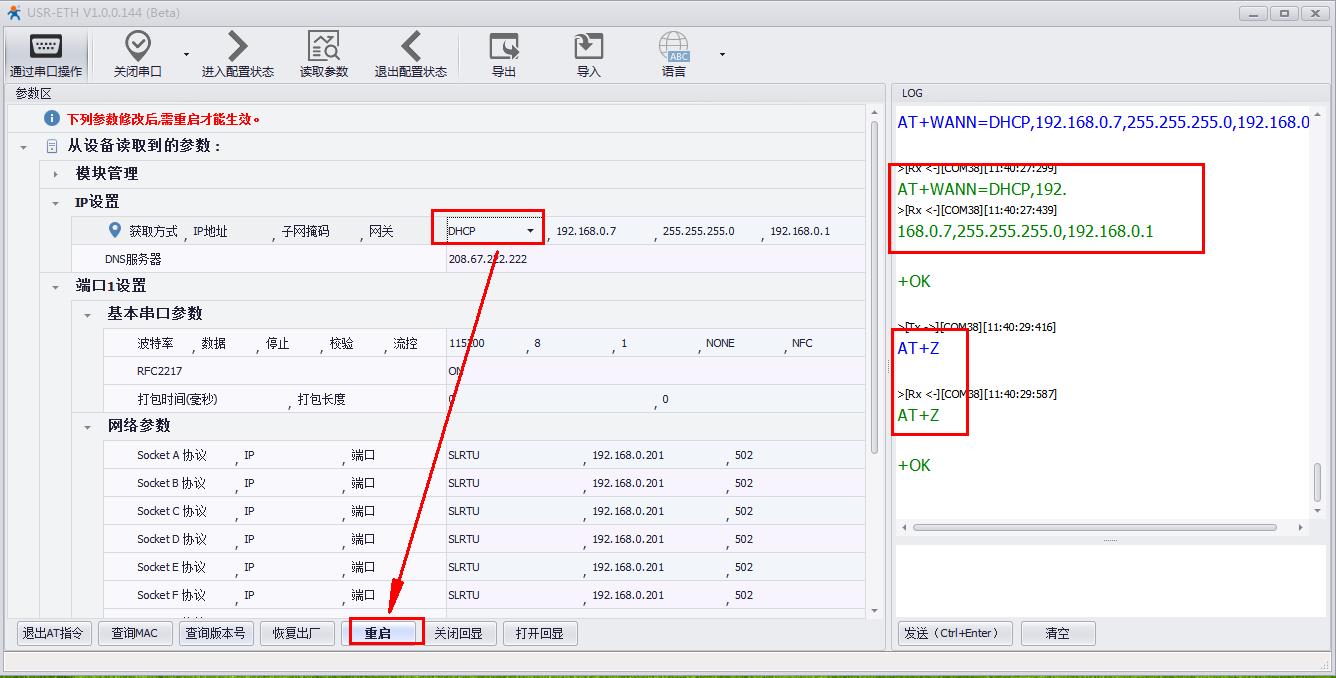 三、DHCP動(dòng)態(tài)獲取IP時(shí),USR-M511做MODBUS RTU從機(jī):