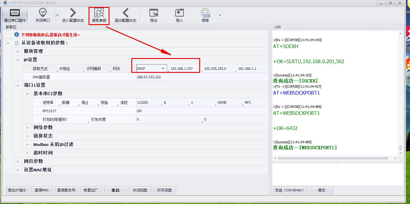 用串口設(shè)置軟件搜索USR-M511的IP。確認(rèn)是192.168.1.237