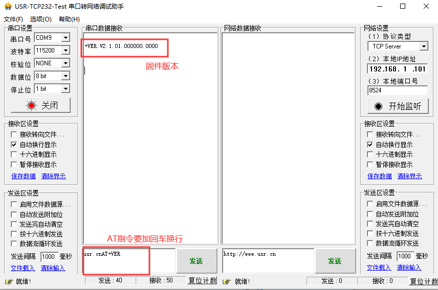 1、查詢DR504的固版本:usr.cnAT+VER,發(fā)送時(shí)使用enter換行之后再發(fā)送。