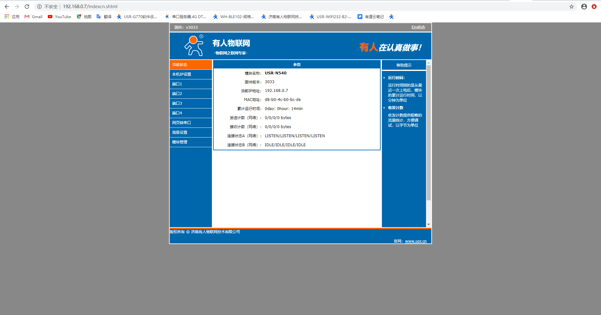 3.瀏覽器輸入IP192.168.0.7進入N540的內(nèi)置網(wǎng)頁