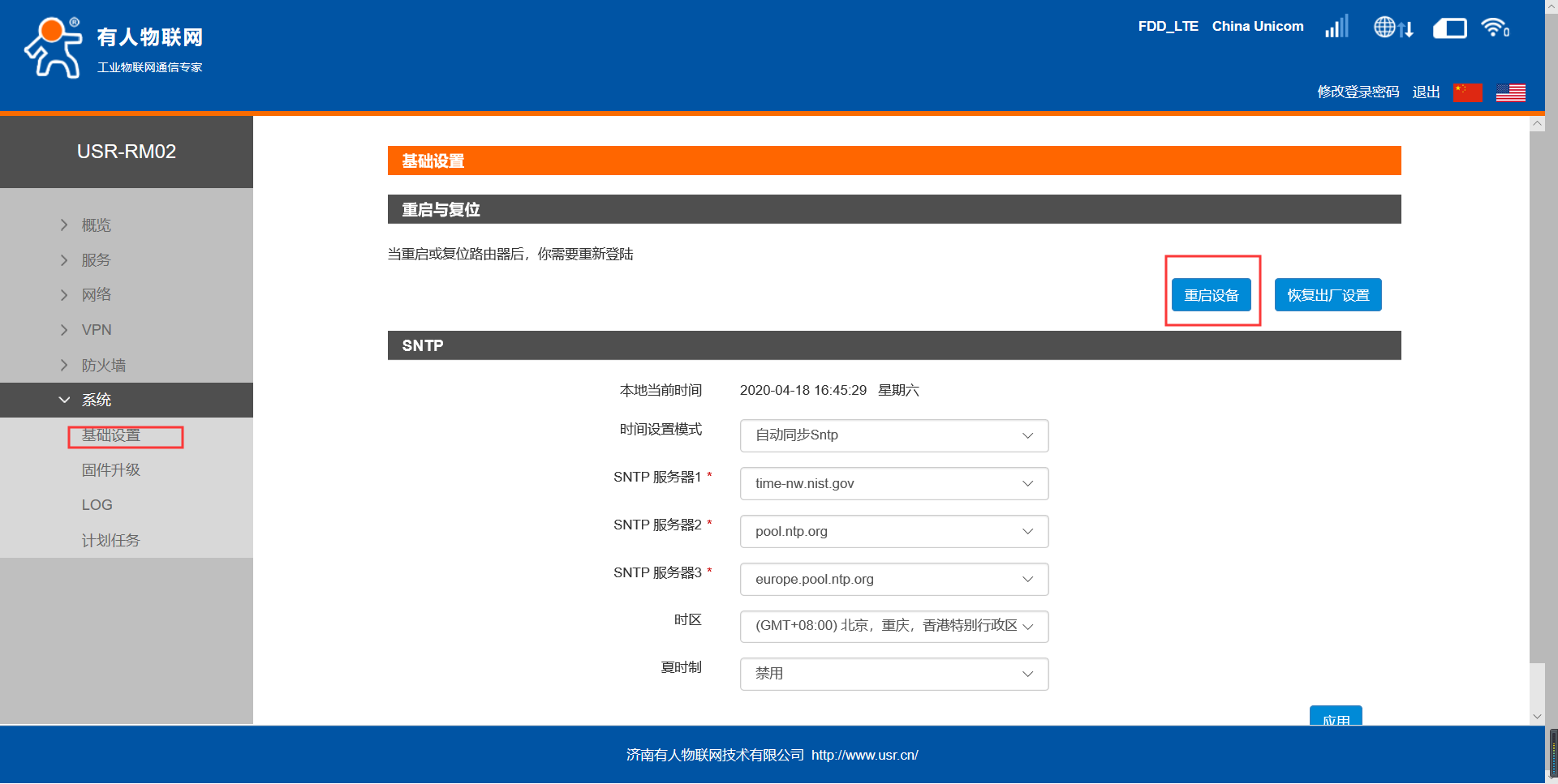 3、設置完參數后點擊系統(tǒng)--基礎設置--重啟設備。