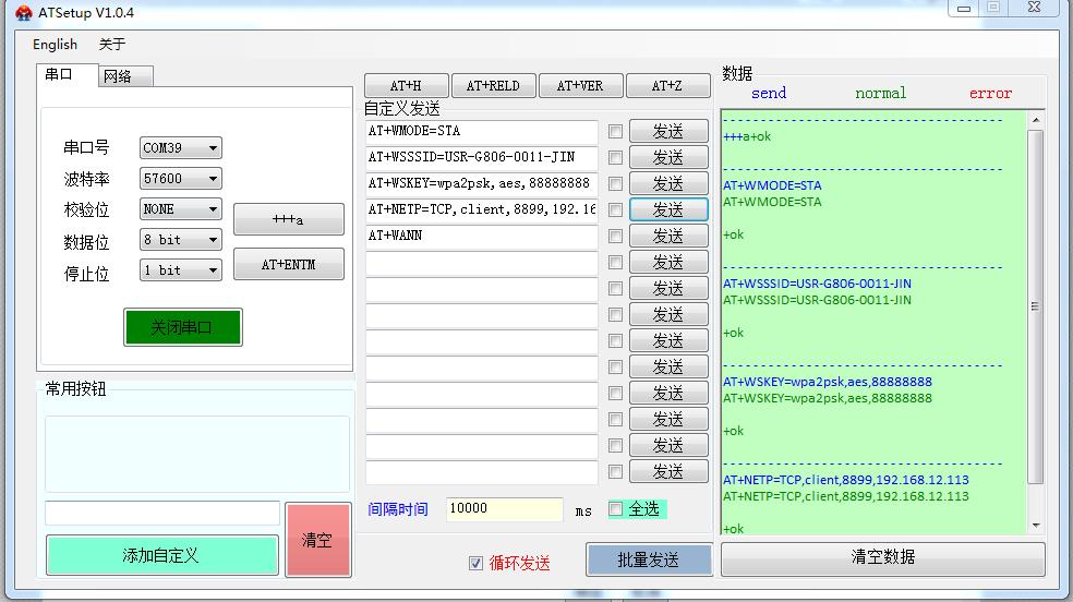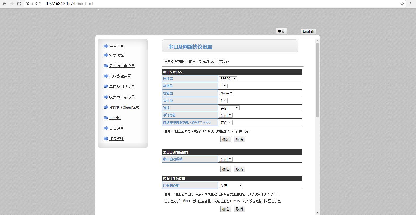 用USR-WIFI232-B2的Ip 登錄USR-WIFI232-B2的網(wǎng)頁,然后修改B2的串口參數(shù)。測試4種工作模式下,串口和網(wǎng)絡(luò)的數(shù)據(jù)透傳。
