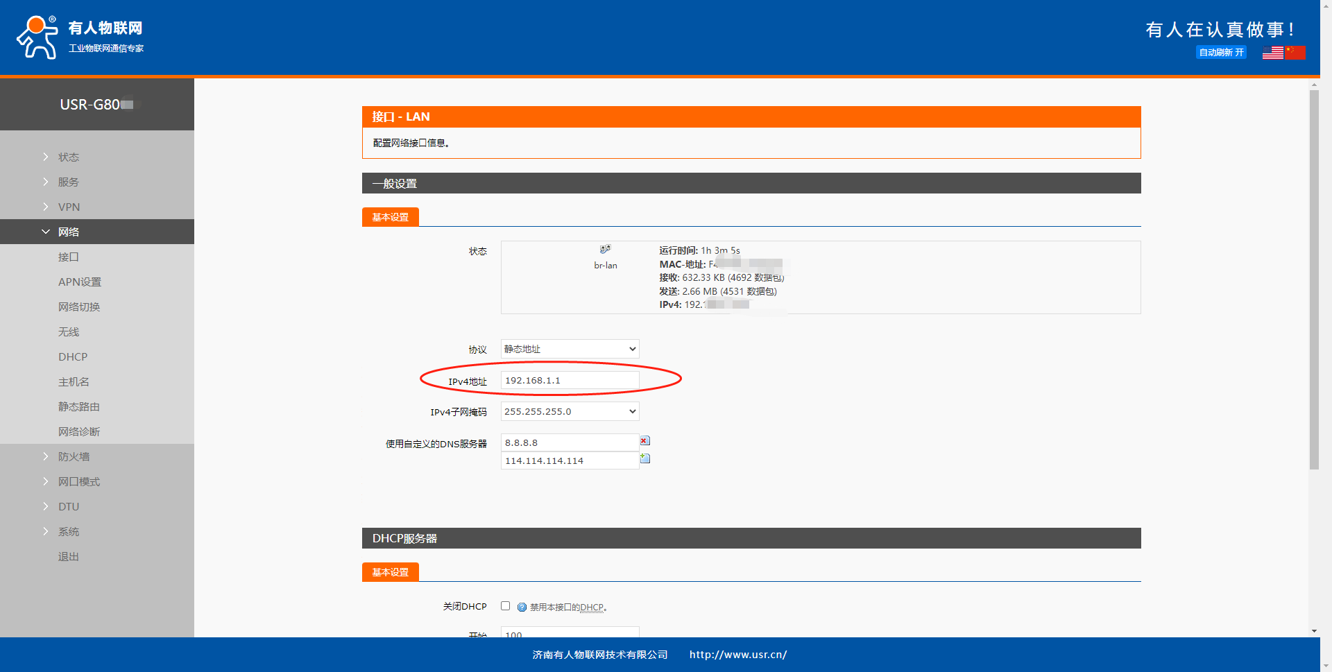 G80x(包括G806、G806s等以及G810)系列:網(wǎng)絡(luò)--接口--修改--IPV4地址--保存&應(yīng)用