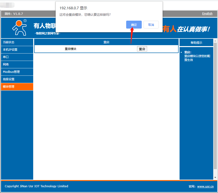 4、打開電腦瀏覽器,地址欄輸入192.168.0.7,進入M511內置網頁。
