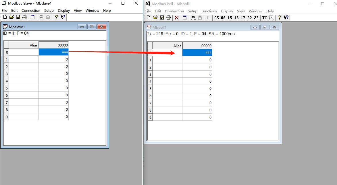測試軟件:modbuspoll / modbusslave(在百度自行下載)