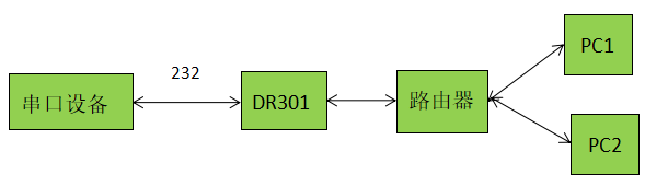 1、將串口服務器DR301(USR-DR301,簡稱301)的串口通過串口線(或USB 轉串口線)與pC相連接,通過網線將301的網口PC的網口相連接,檢測硬件連接無錯誤后,接入我們配送的電源適配器,給301供電。