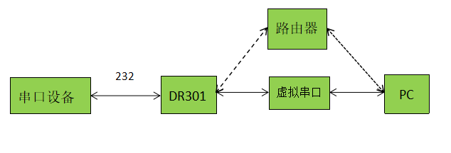 1、將301(USR-DR301,簡(jiǎn)稱301)的串口通過(guò)串口線(或USB 轉(zhuǎn)串口線)與pC相連接,通過(guò)網(wǎng)線將串口服務(wù)器DR301的網(wǎng)口pC的網(wǎng)口相連接,檢測(cè)硬件連接無(wú)錯(cuò)誤后,接入我們配送的電源適配器,給301供電。