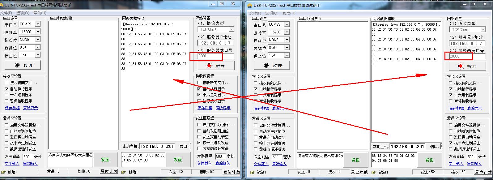 在電腦下載,并安裝打開(kāi)2個(gè)USR-TCP232-TEST 串口網(wǎng)絡(luò)助手。