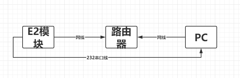 (或者USR-TCP232-E2網(wǎng)口用網(wǎng)線接路由器,電腦也連接同一個工業(yè)路由器。USR-TCP232-E2用串口設(shè)置軟件設(shè)置DHCP,動態(tài)獲取IP)