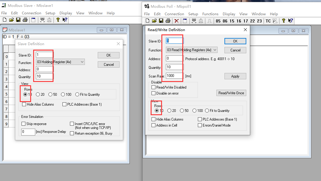 4、MODBUS SLAVE和MODBUS POLL軟件設(shè)置: