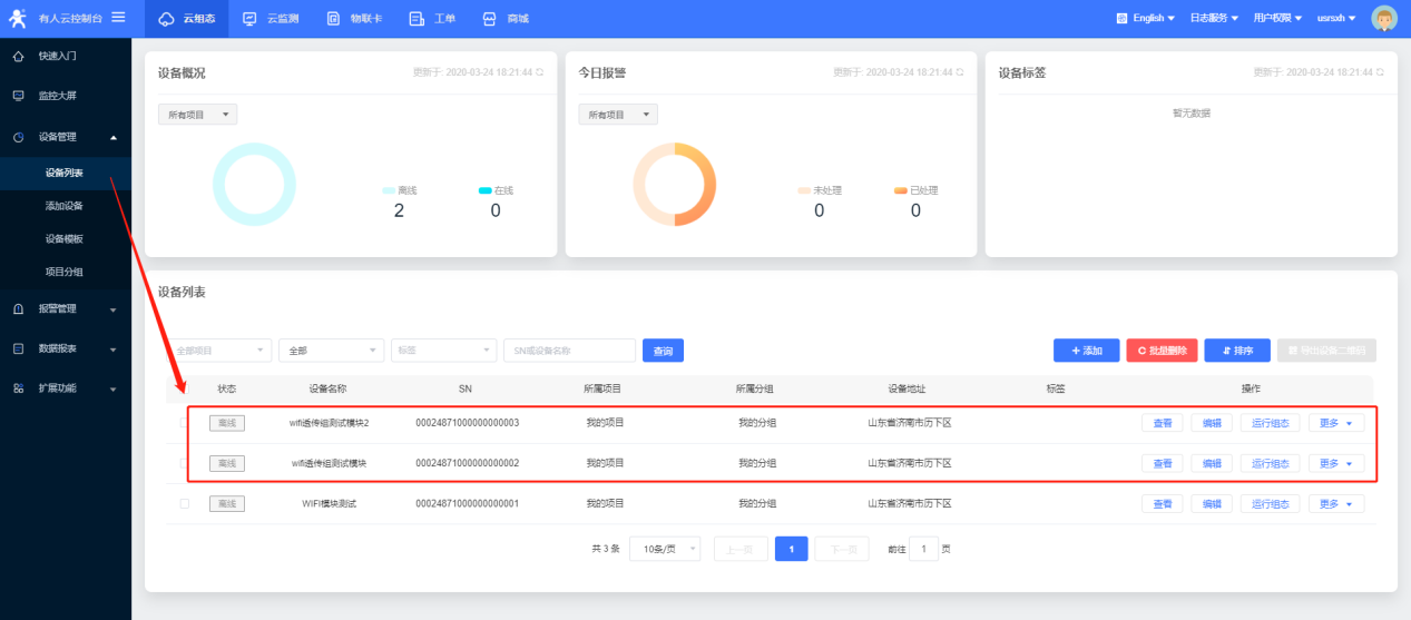 10、設(shè)備列表內(nèi)可以看到剛剛添加的兩個(gè)設(shè)備。