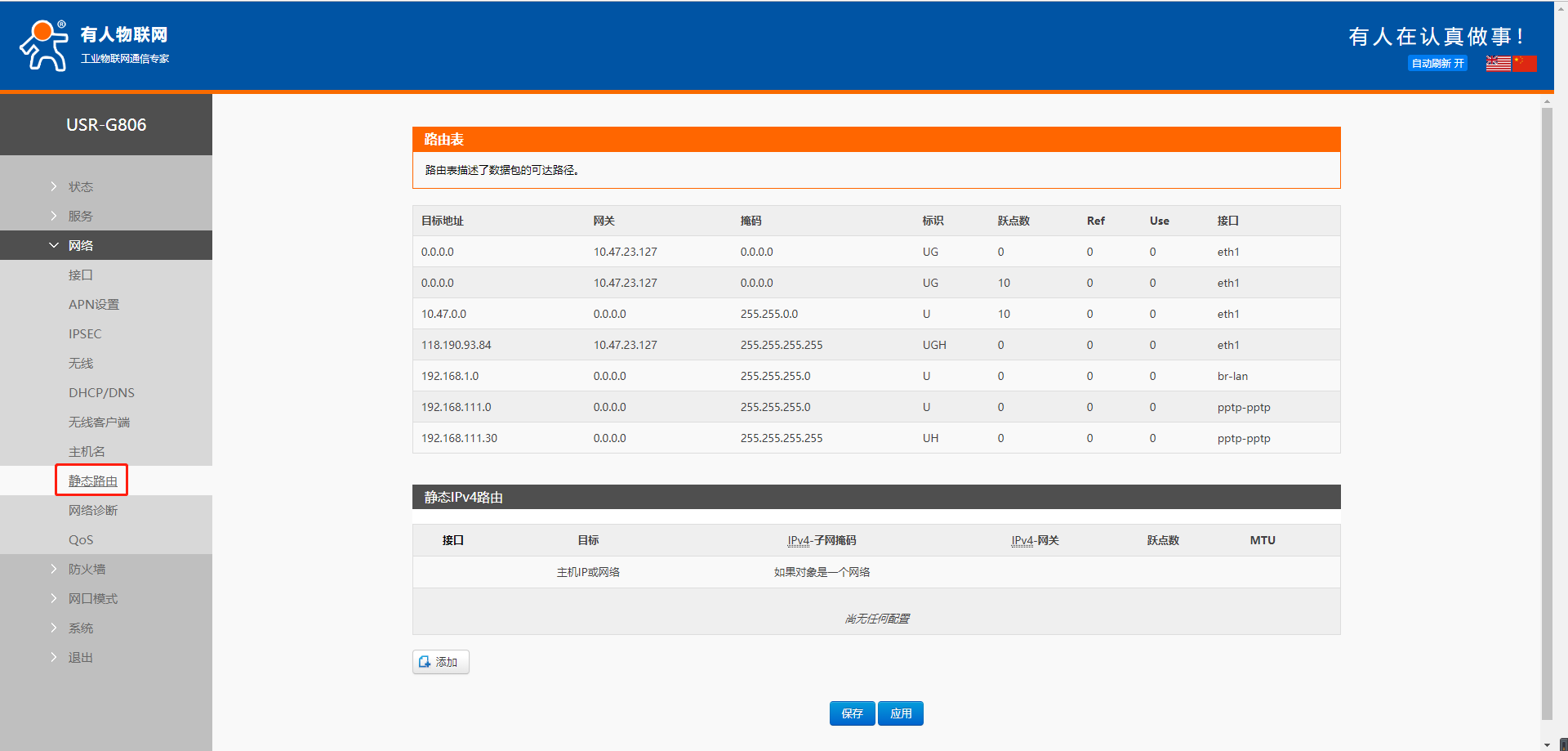 6. 設(shè)置參數(shù)無誤,保存應(yīng)用之后可以看到設(shè)備獲取到的VPN IP。在接口pptp位置可以看到,也可以進(jìn)入pptp這個接口查看。