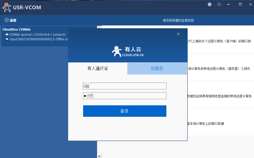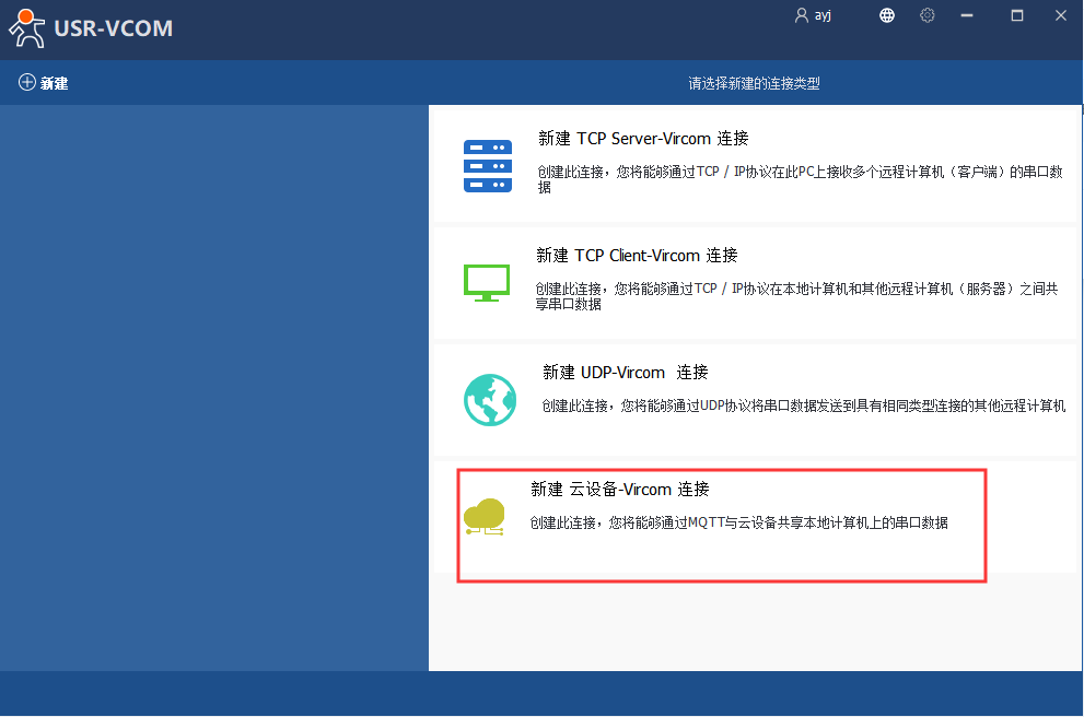 (2)點擊新建云設備-Vircom連接