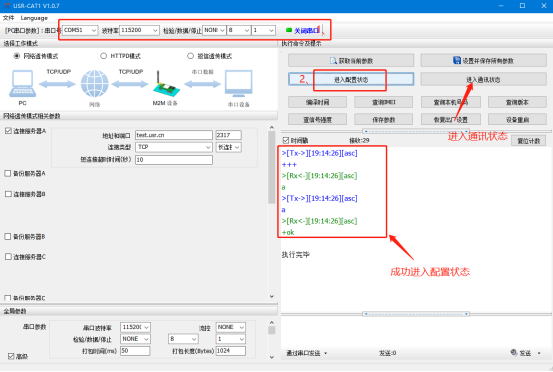 4、點擊進入配置狀態(tài)返回+++ a a+ok是正確進入配置狀態(tài)