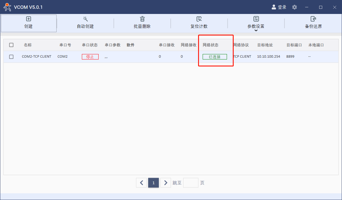 點(diǎn)擊確定之后可以看到虛擬串口的連接狀態(tài)為已連接。