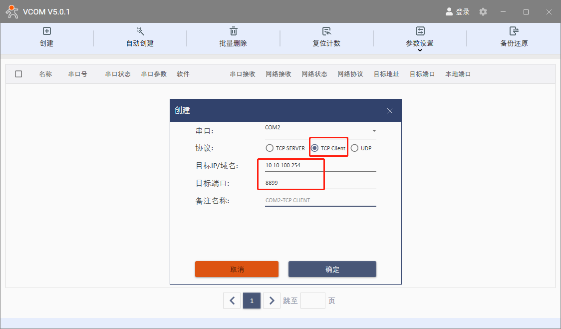 TCP CLIENT 的目標(biāo)端口=TCP SERVER 的本地端口(這個(gè)端口可以隨意設(shè)置,只要不是特殊端口或重復(fù)端口就可以)。
