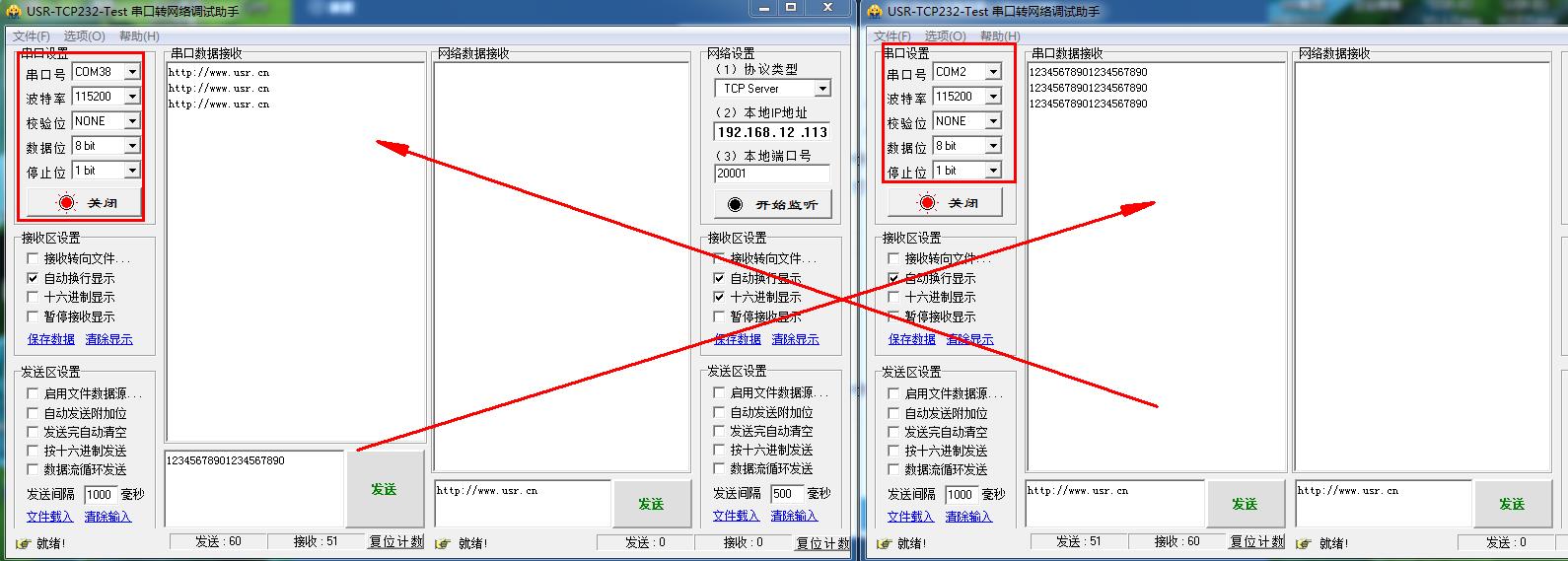 1、2個302一對一通訊,電腦用串口助手打開2個302的COM口,用對應(yīng)302的串口參數(shù),然后進行數(shù)據(jù)傳輸。