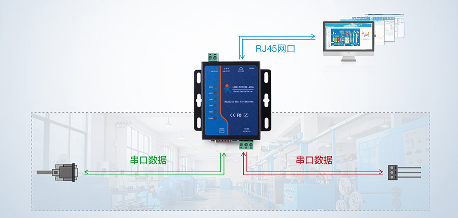 原理:計(jì)算機(jī)串口(COM端口)和以太網(wǎng)局域網(wǎng)(LAN)之間傳輸數(shù)據(jù)的設(shè)備。這使得可以使用以太網(wǎng)代替串行電纜,最大限度地減少工作站的混亂,并允許將串行設(shè)備放置在距離計(jì)算機(jī)較遠(yuǎn)的位置。