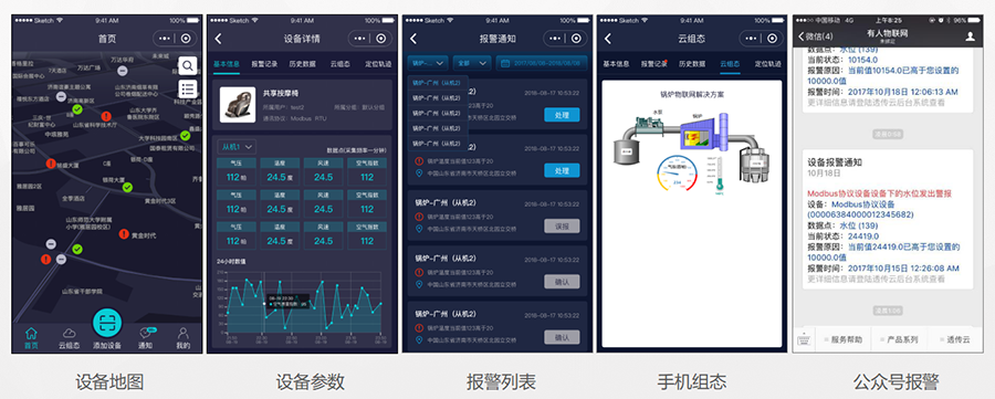 有人云支持微信關(guān)聯(lián),用戶可以借助手機(jī)端遠(yuǎn)程查看、接收設(shè)備的運(yùn)行狀態(tài)和報(bào)警信息,隨時(shí)隨地查看設(shè)備地圖、設(shè)備參數(shù)、報(bào)警列表,并能進(jìn)行手機(jī)組態(tài)操作,移動(dòng)端操控,方便快捷。