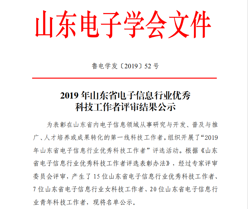 12月20日,山東電子學(xué)會組織召開“2019山東電子信息精英匯”,并對外公布了年度相關(guān)獎項評選工作結(jié)果。