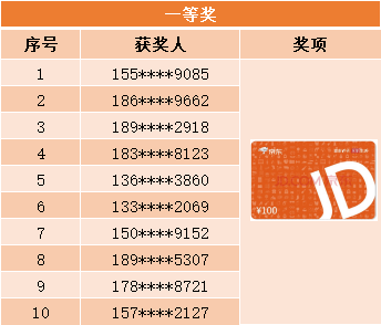 ● 一等獎(jiǎng)100元京東購物卡(10名)