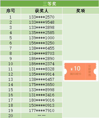 ● 三等獎(jiǎng)有人商城店10元優(yōu)惠券(滿50元使用)