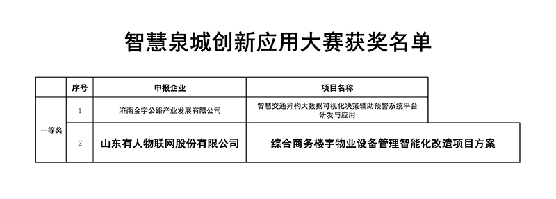 其中,“智慧泉城創(chuàng)新應(yīng)用大賽”共評選出8家獲獎企業(yè),有人集團(tuán)參賽的“綜合商務(wù)樓宇物業(yè)設(shè)備管理智能化改造項目方案”突出重圍,榮獲一等獎,全市僅兩家!