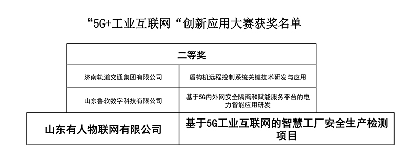 “5G+工業(yè)互聯(lián)網(wǎng)應(yīng)用創(chuàng)新大賽”共評選出9家獲獎企業(yè),有人集團(tuán)參賽的“基于5G工業(yè)互聯(lián)網(wǎng)的智慧工廠安全生產(chǎn)檢測項目”斬獲二等獎,全市僅三家!