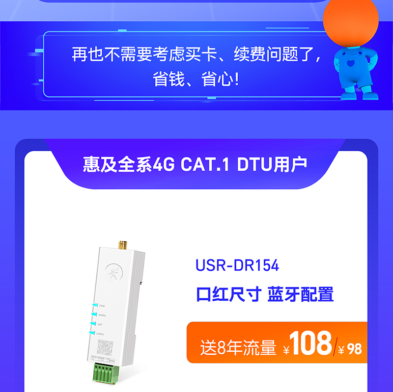 有人全系4G CAT.1 DTU 送8年流量