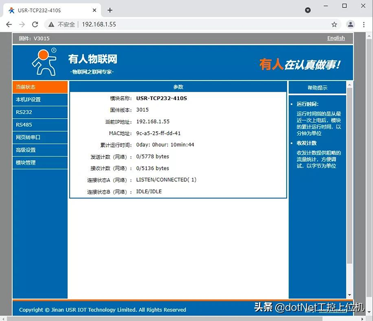 不同品牌的串口服務(wù)器使用方法大同小異,這里主要以山東濟(jì)南有人的USR-TCP232-410s為例,跟大家分享一下串口服務(wù)器的使用方法。