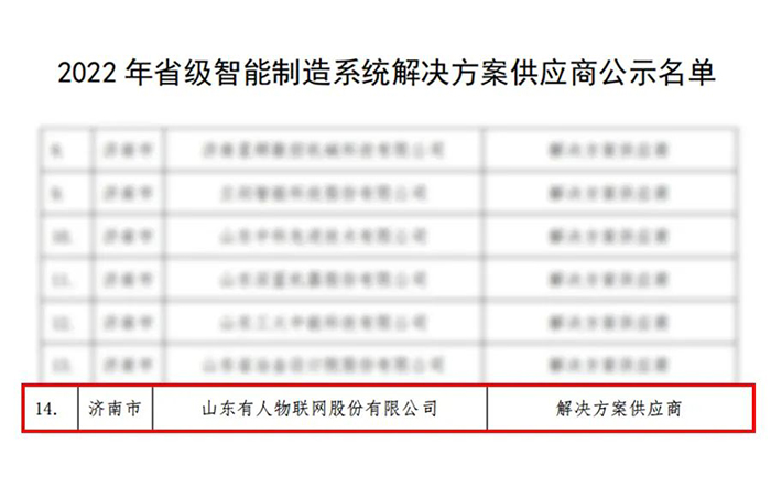 近日,山東省工業(yè)和信息化廳陸續(xù)公示了山東省第一批優(yōu)秀數(shù)字產(chǎn)品、山東省智能制造系統(tǒng)解決方案供應(yīng)商名單,有人物聯(lián)網(wǎng)憑借技術(shù)優(yōu)勢(shì),科研能力與綜合實(shí)力強(qiáng)勢(shì)入選兩個(gè)榜單。兩項(xiàng)殊榮加冕,標(biāo)志著有人在智能制造領(lǐng)域的核心競(jìng)爭(zhēng)力已經(jīng)位居全省前列。