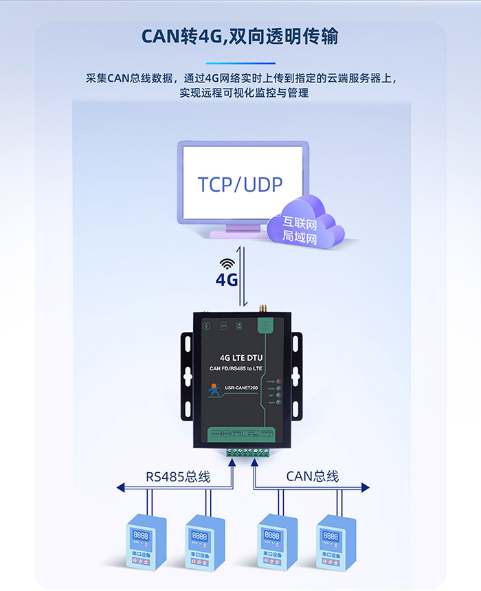 有人物聯(lián)網(wǎng) 推出CAN轉(zhuǎn)4G的DTU設(shè)備,能夠輕松實現(xiàn)將目標(biāo)CAN設(shè)備轉(zhuǎn)換為4G信號,快速云端,遠(yuǎn)程監(jiān)管,讓您也能隨時隨地監(jiān)控設(shè)備運(yùn)行。