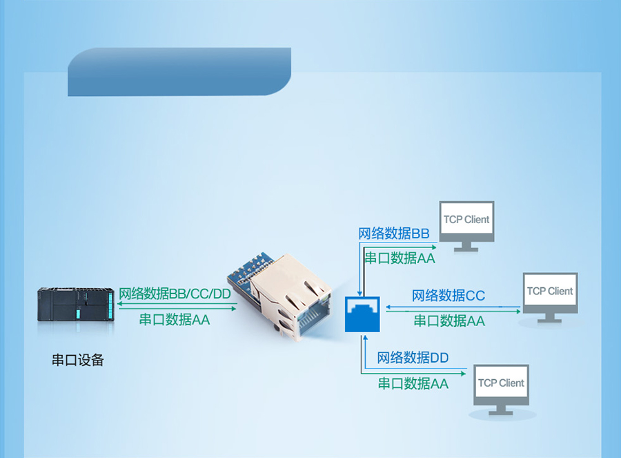TCP Client模式下,快速實(shí)現(xiàn)數(shù)據(jù)透?jìng)?/p>