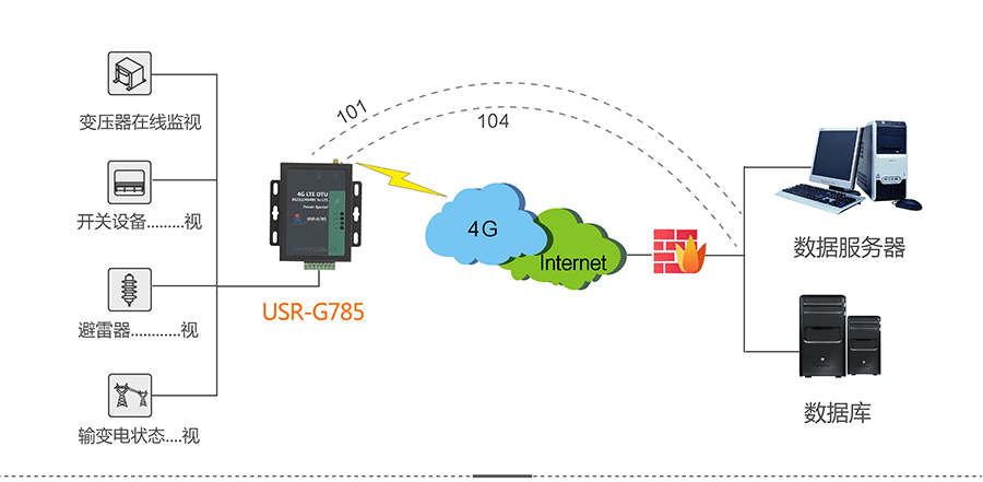 USR-G785 是一款高穩(wěn)定、抗干擾的工業(yè)級(jí)無線數(shù)據(jù)傳輸終端,專為電力行業(yè)設(shè)計(jì),為苛刻環(huán)境下無人值守的電力項(xiàng)目,提供穩(wěn)定的網(wǎng)絡(luò)通信。既可以實(shí)現(xiàn)常規(guī) DTU 的數(shù)據(jù)透?jìng)鞴δ�,也可以�?shí)現(xiàn)電力專屬協(xié)議透?jìng)鞴δ堋Mㄟ^簡(jiǎn)單的 AT指令進(jìn)行設(shè)置,即可輕松使用本產(chǎn)品實(shí)現(xiàn)串口到網(wǎng)絡(luò)服務(wù)器的雙向數(shù)據(jù)傳輸。