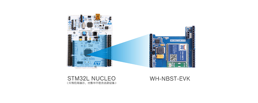 WH-NBST-EVK擴(kuò)展板為STM32 Nucleo-64開發(fā)板的配件,板載WH-NB73 NB-IoT模組和DHT11溫濕度傳感器,支持與STM32 Nucleo-64系列開發(fā)板無縫銜接,可幫助用戶快速構(gòu)建NB-IoT相關(guān)的應(yīng)用。同時(shí),用戶也可通過運(yùn)行配套的Demo例程,實(shí)現(xiàn)使用STM32采集溫濕度數(shù)據(jù)并上報(bào)到有人透?jìng)髟频墓δ?。用戶借助透?jìng)髟疲?編程實(shí)現(xiàn)多種形式的數(shù)據(jù)展示。