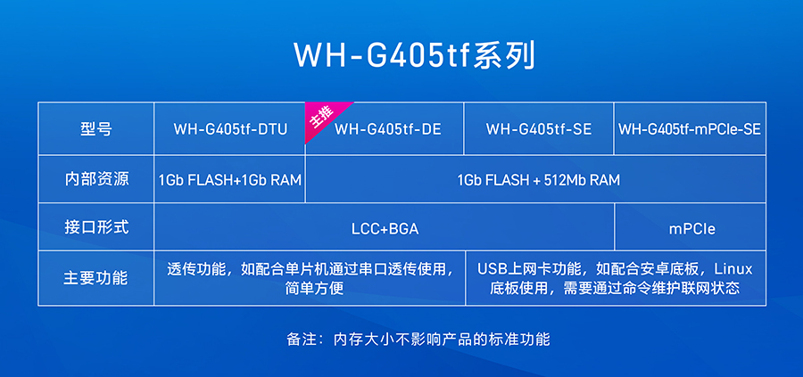 WH-G405tf是一款五模十三頻4G模塊,適用于需要高速數(shù)據(jù)傳輸及大數(shù)據(jù)量穩(wěn)定