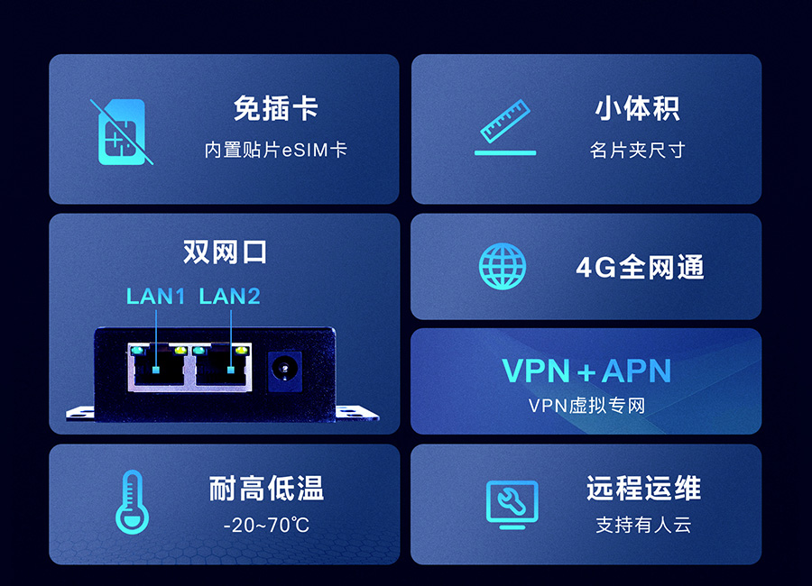 ● 內(nèi)置貼片eSIM卡,避免接觸不良