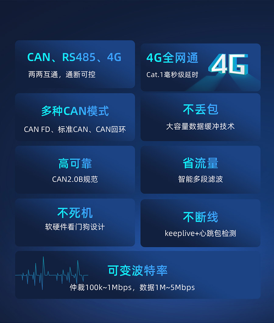 支持CAN和RS485,端子接口,波特率1200~460.8Kbps