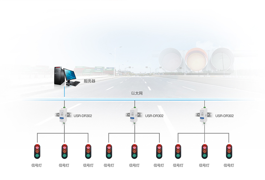 DR302連接交通信號燈,將交通路況信息送上網(wǎng)絡端,