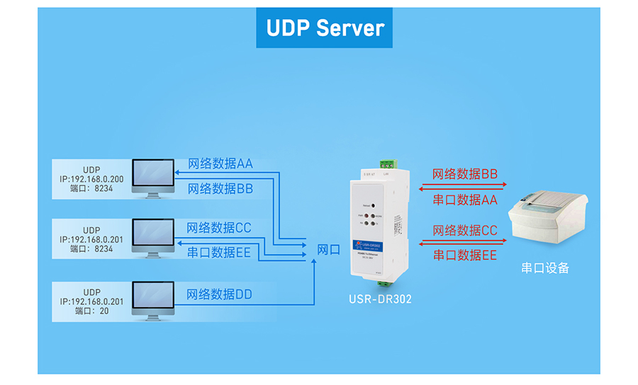 DR302只與目標IP的目標端口通訊,從而提高數(shù)據(jù)傳輸?shù)臏蚀_性