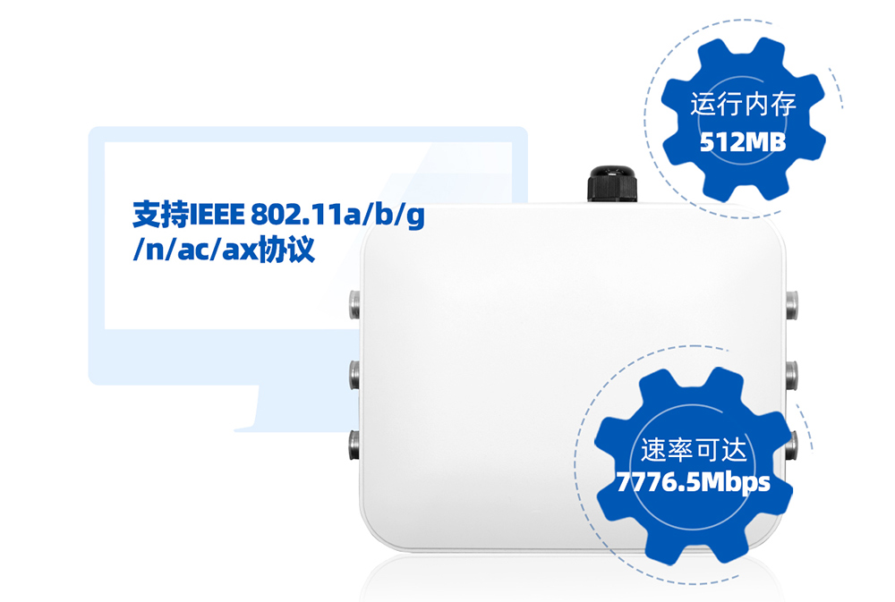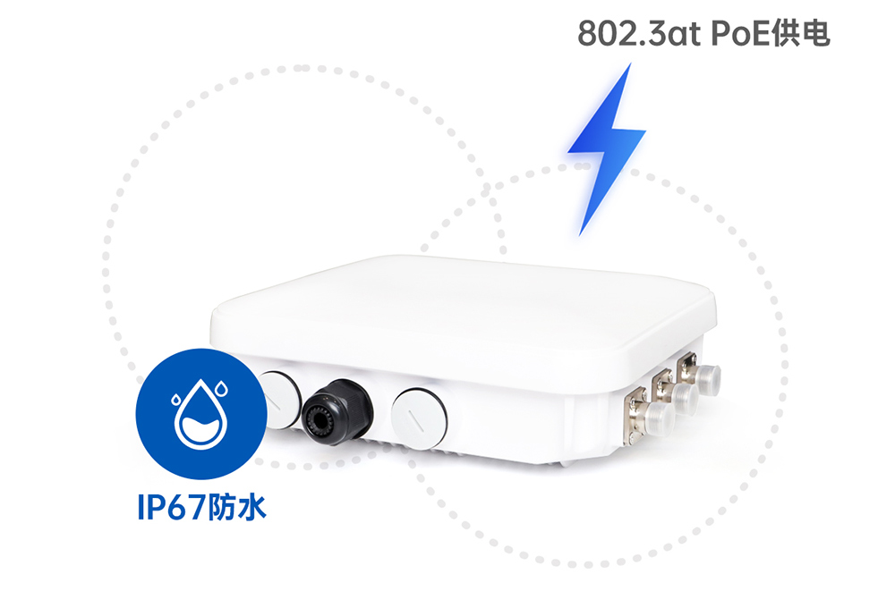 NR530X | 戶外WiFi 6/WiFi 6E AX7800 三頻AP WiFi 6商用AP, 工業(yè)AP, 802.3at PoE供電 AP530X是一款戶外型WiFi 6/WiFi 6E三頻AP。產(chǎn)品基于強(qiáng)大的高通無線核心,27dBm的強(qiáng)大功率搭配外置天線可實(shí)現(xiàn)更大的覆蓋范圍,支持IEEE 802.11a/b/g/n/ac/ax協(xié)議,默認(rèn)支持WiFi 6三頻(2.4Ghz/5Ghz-1/5Ghz-2),可選支持WiFi 6E三頻(2.4Ghz/5Ghz/6Ghz),三頻并發(fā)接入最高速率接近7800Mbps,標(biāo)配512MB的運(yùn)行內(nèi)存(支持定制256MB到1GB)。優(yōu)異的性能和穩(wěn)定性不僅源自于高端的高通核心平臺,更依賴于我們專業(yè)的研發(fā)團(tuán)隊(duì)的軟硬件設(shè)計(jì)。產(chǎn)品可以廣泛應(yīng)用于園區(qū)覆蓋、能源礦場、智慧碼頭、倉儲(chǔ)物流、智慧城市、展館會(huì)場等行業(yè)和場景。