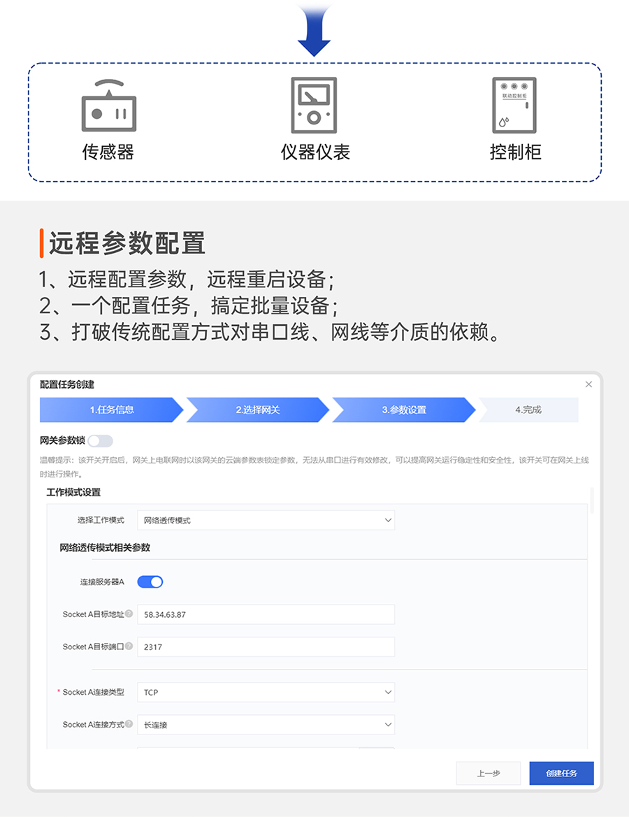 TCP/UDP透傳模式、HTTPD模式、短信透傳模式、MQTT模式