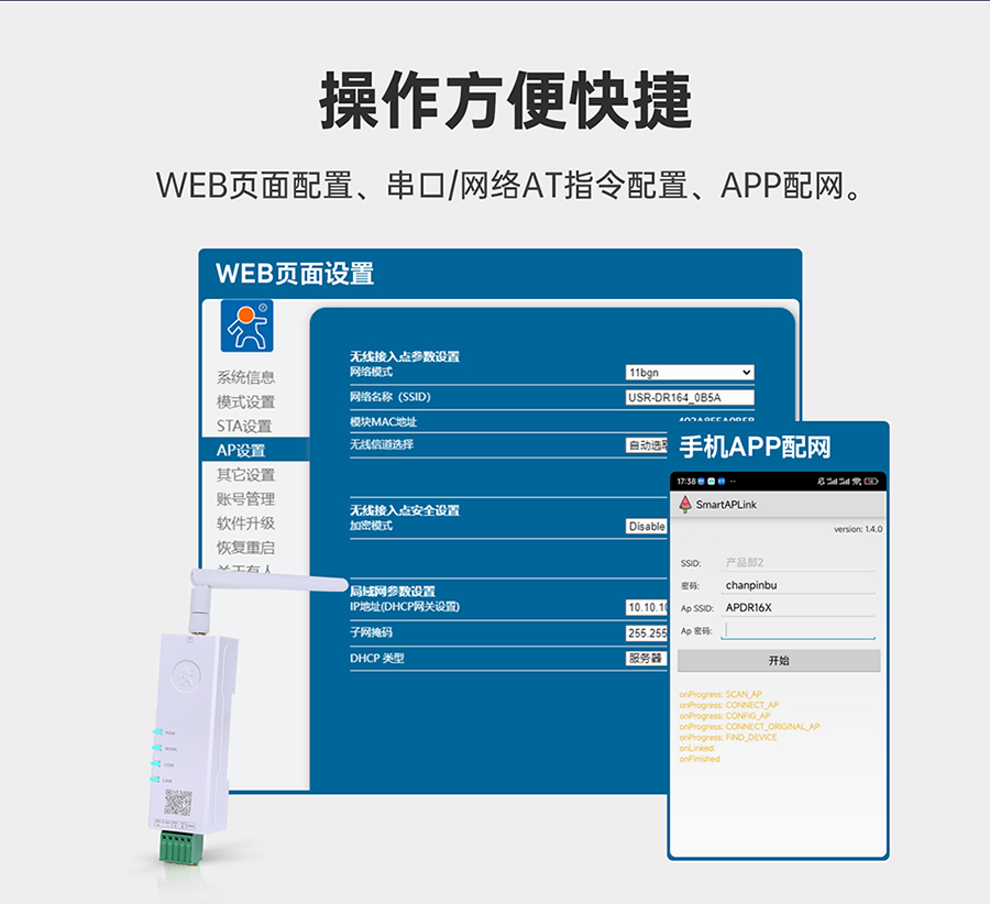 WEB頁面配置、AT指令配置、APP配網(wǎng)